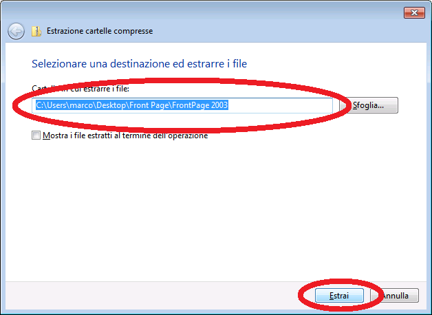 e confermeremo la decompressione cliccando Estrai.