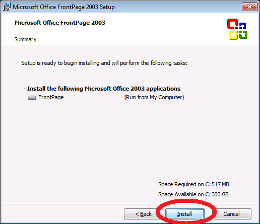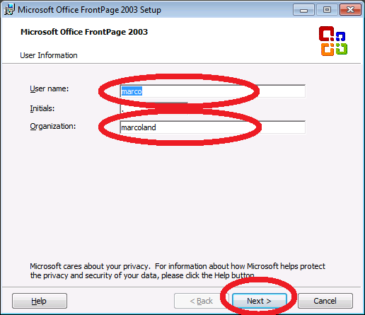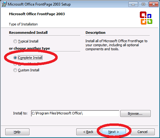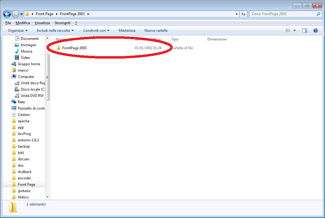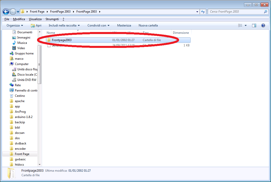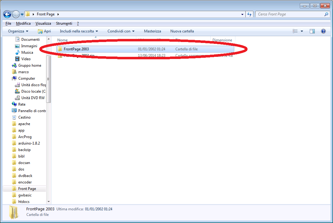 che conterrà tutta l'installazione decompressa di Front Page.