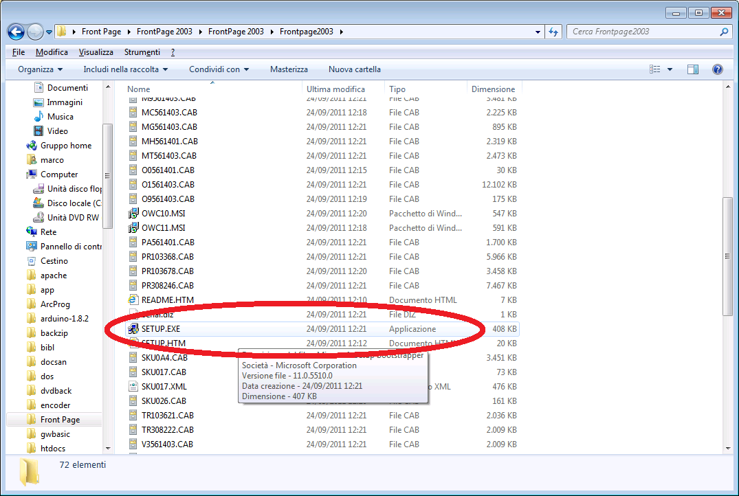 E andando a selezionare ed eseguire il file SETUP.EXE