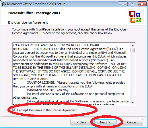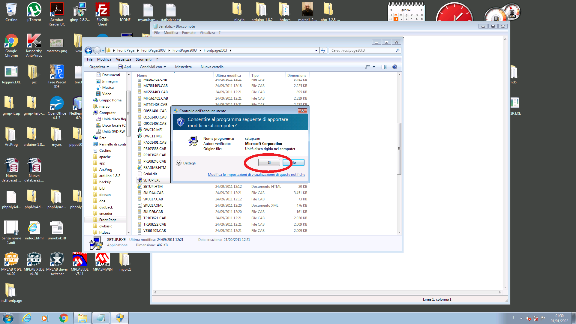 Proseguiremo rispondendo affermativamente alla richiesta di consenso di installazione di Front Page.