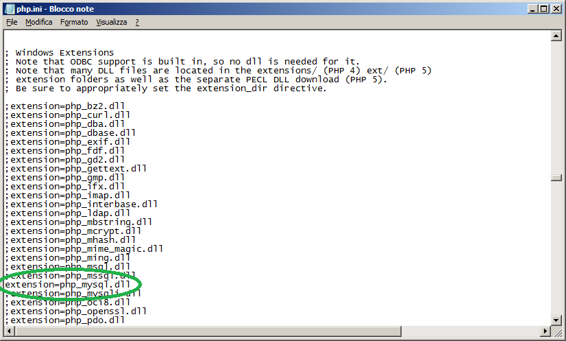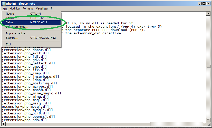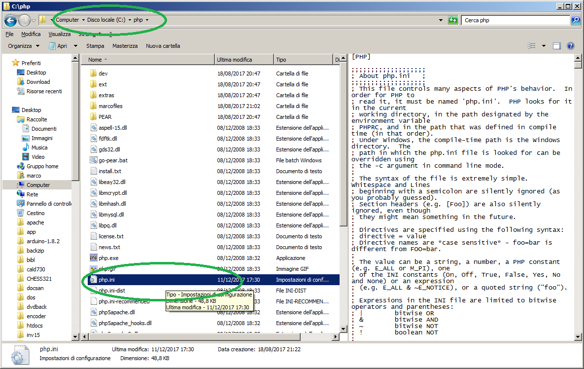 Qundi apriremo PHP.INI e lo scorreremo fino a