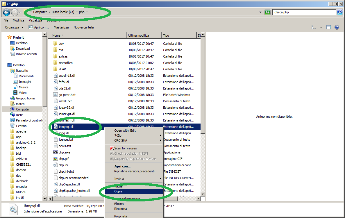 selezioneremo la libreria libmysql.dll e la copieremo.
