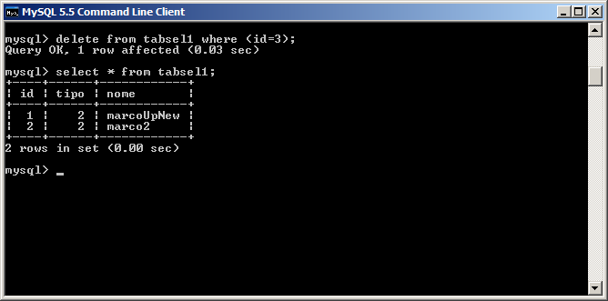 ad utilizzare il comando delete per la cancellazione di righe da una tabella.