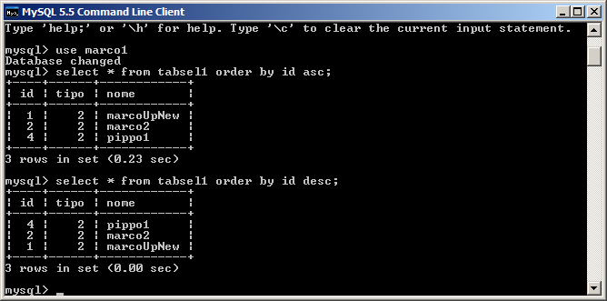 mentre nella seconda query ordineremo i risultati sempre in base al contenuto