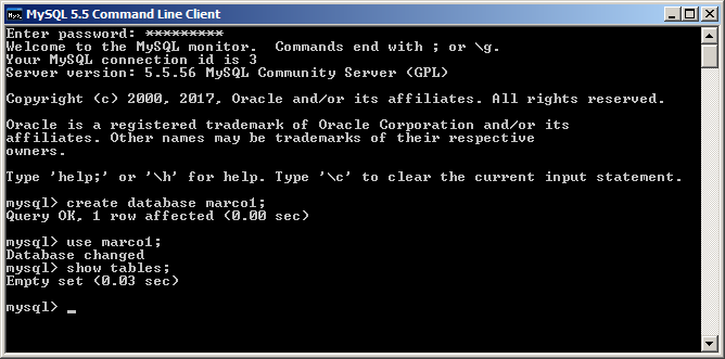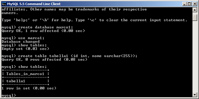dovremo riaprire il client MYSQL andando su Start, Tutti i Programmi,