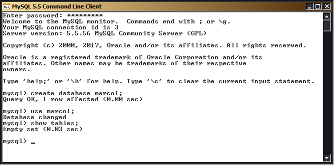 Fatto questo possiamo riscrivere show tables, e controllare che la tabella