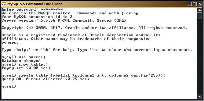 2) a creare una nuova tabella per l'inserimento futuro dei dati "create table nome_tabella(id int, ...);"
