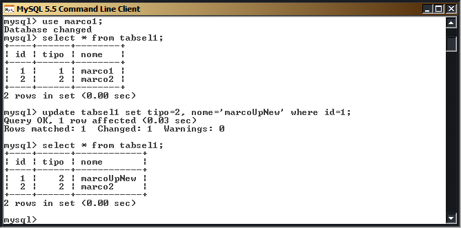 ad utilizzare il comando update per modificare i dati contenuti in un record.